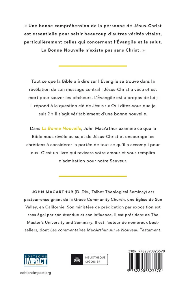 « Une bonne compréhension de la personne de Jésus-Christ est essentielle pour saisir beaucoup d’autres vérités vitales, particulièrement celles qui concernent l’Évangile et le salut. La Bonne Nouvelle n’existe pas sans Christ. »