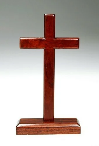 Croix bois foncé sur socle - 40 cm