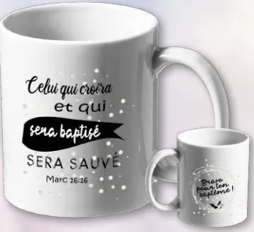Mug baptême Celui qui croira et qui sera... - Marc 16:16